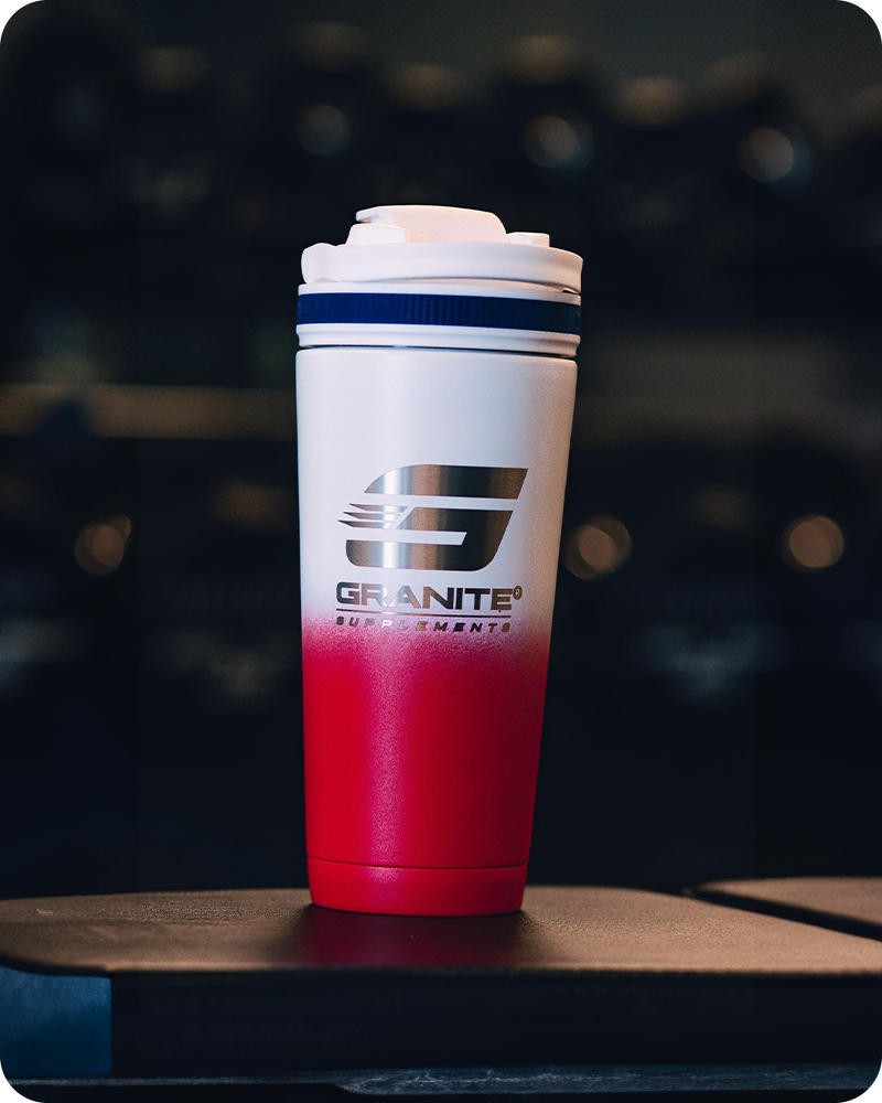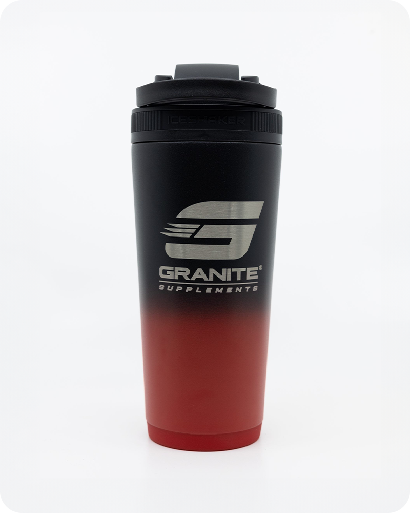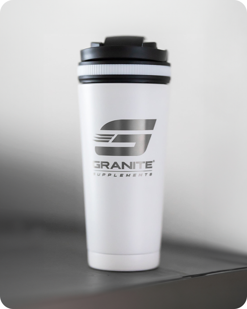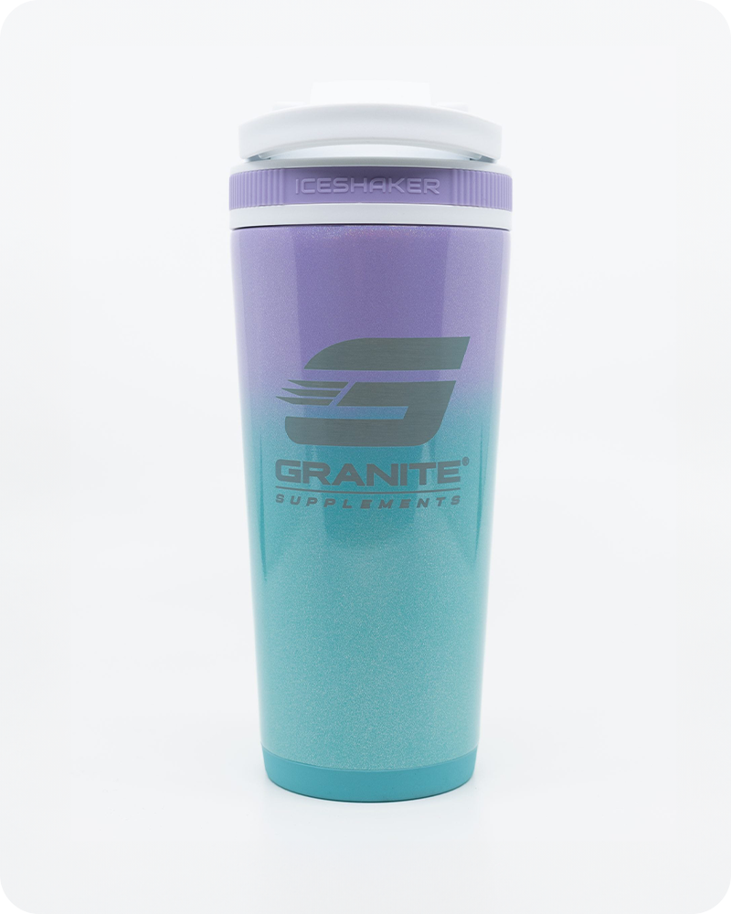 Stay refreshed and ready with the Granite Supplements Ice Shaker Cup. Featuring a 26oz stainless steel body, this premium shaker bottle is built with double-wall vacuum insulation, keeping drinks cold for over 30 hours or hot for up to 12 hours. The shaker lid comes with a carrying handle, an easy-open pop top, and a removable agitator for effortless mixing of your protein shakes, smoothies, or any beverage. W